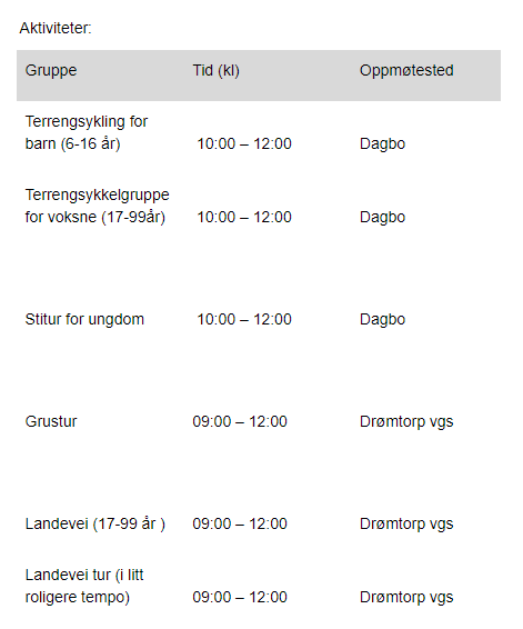 Sykkelklubb gjennom et variert turtilbud for nye så vel som øvede ryttere. Det